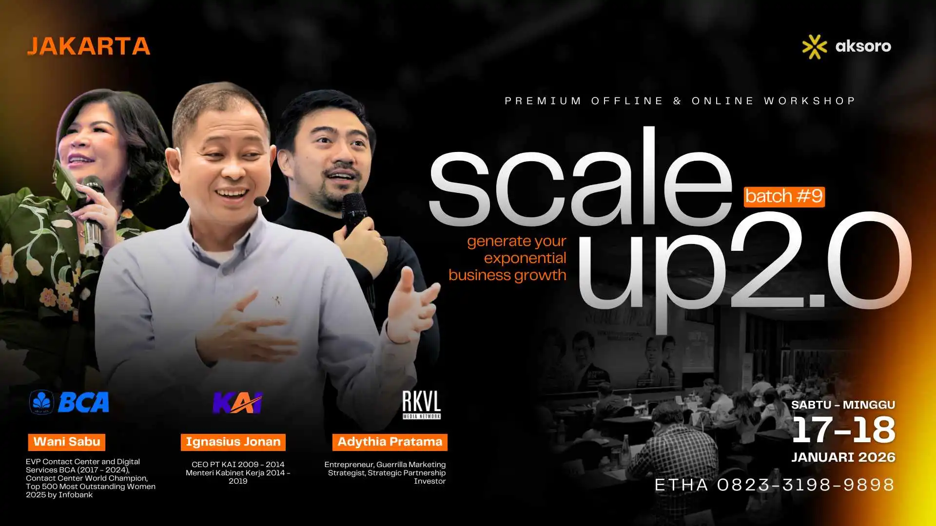 Di Workshop SCALE UP 2.0 Pak Jonan bukan cuma talkshow, tapi mengisi materi tentang ULTIMATE LEADERSHIP. Sesinya panjang. Anda bisa berdiskusi langsung dengan beliau.