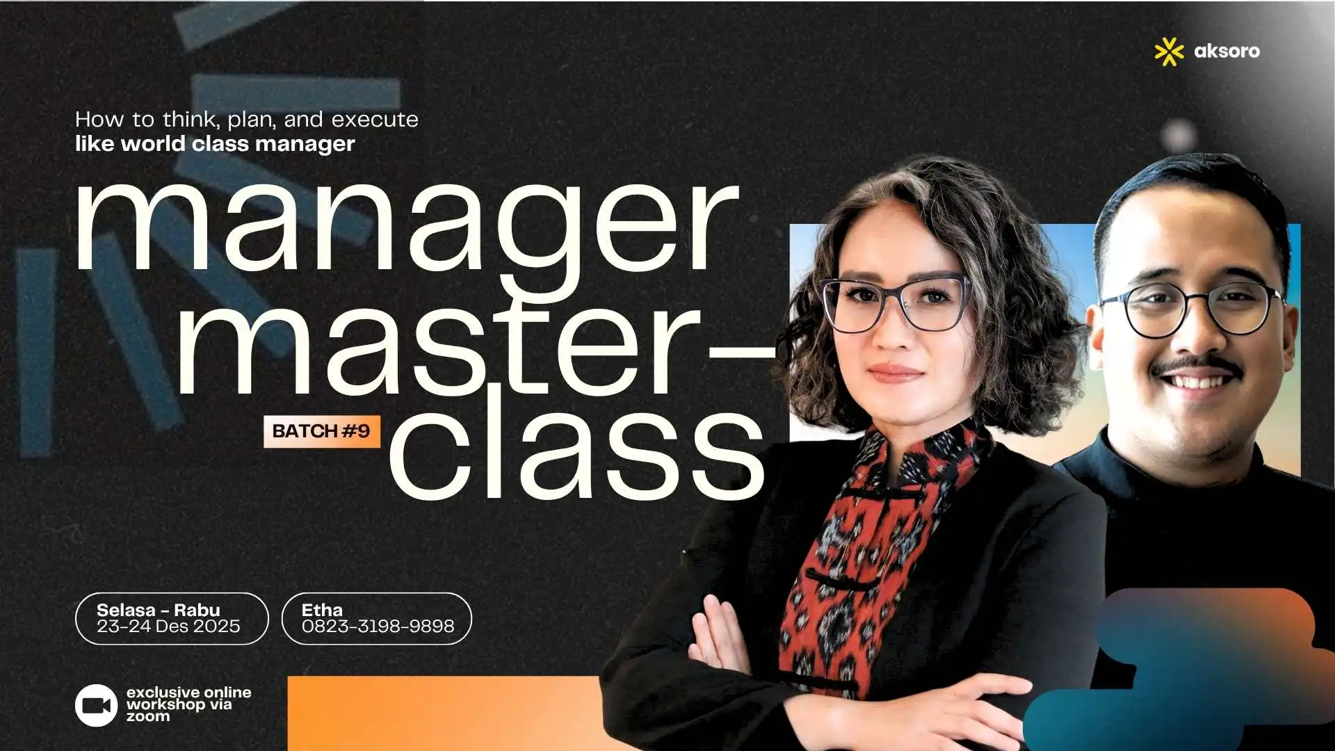 Perusahaan besar lahir dari manajer yang mampu berpikir strategis dan mengeksekusi dengan jelas. Dalam Manager Masterclass, Coach Lasya Miranti, MBA, ACC —Business & Marketing Consultant dan Professional Coach dengan pengalaman lebih dari 18 tahun di bidang bisnis, marketing, dan leadership akan membantu Anda mengasah cara berpikir, merancang, dan mengeksekusi rencana seperti world-class manager.